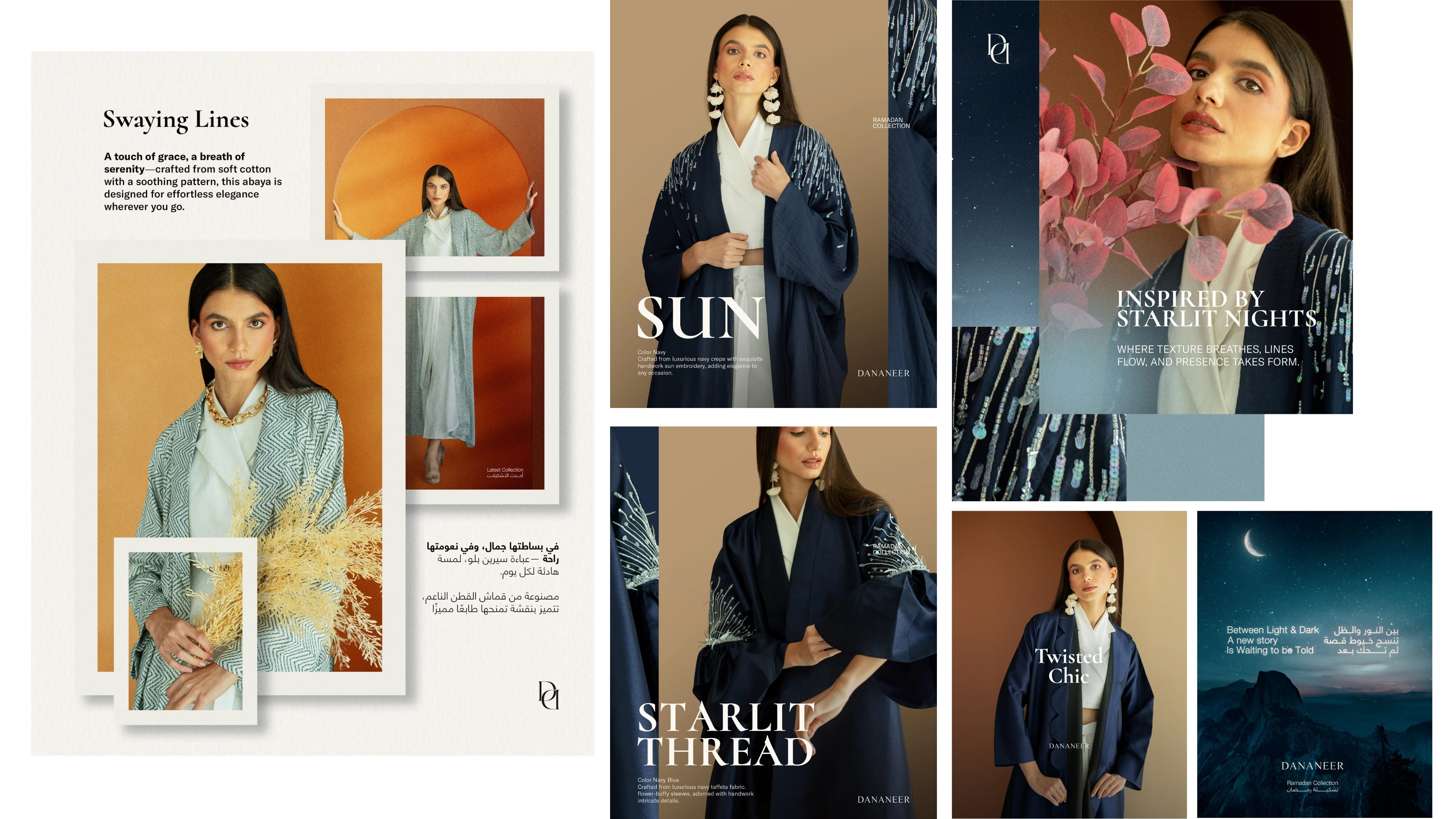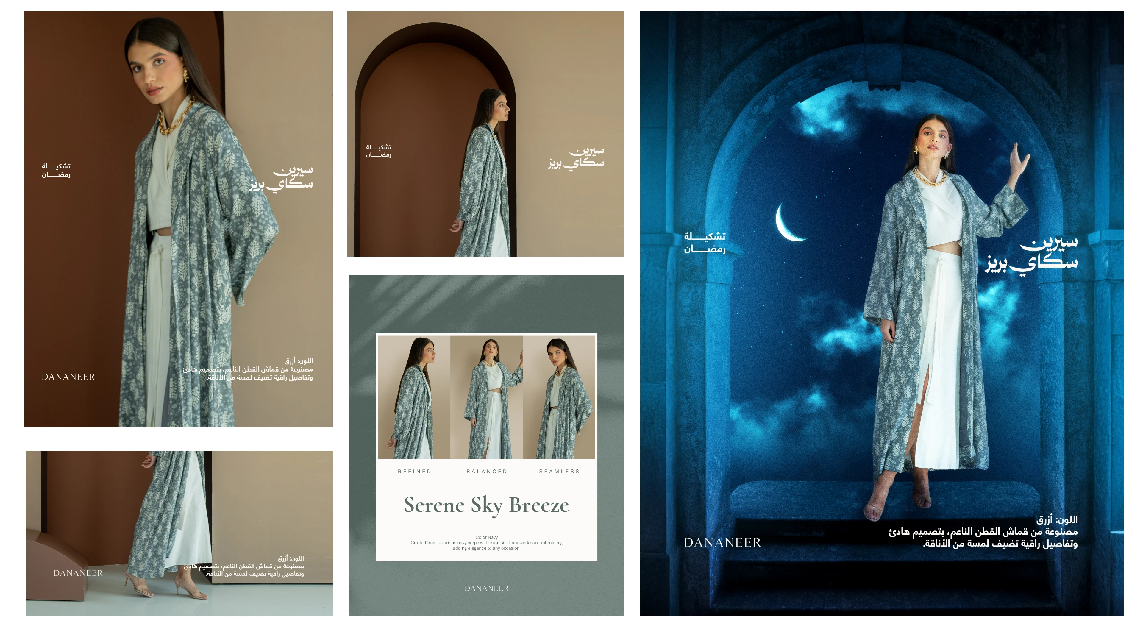 Inspired by the charm of starry Ramadan nights and intimate gatherings, the campaign captured Dananeer’s essence through a lens of elegance and cultural warmth. Soft lighting, celestial tones, and graceful silhouettes came together to reflect the spirit of the season, where tradition meets refined celebration. Each visual told a story of connection, femininity, and the timeless beauty that defines the Dananeer woman.